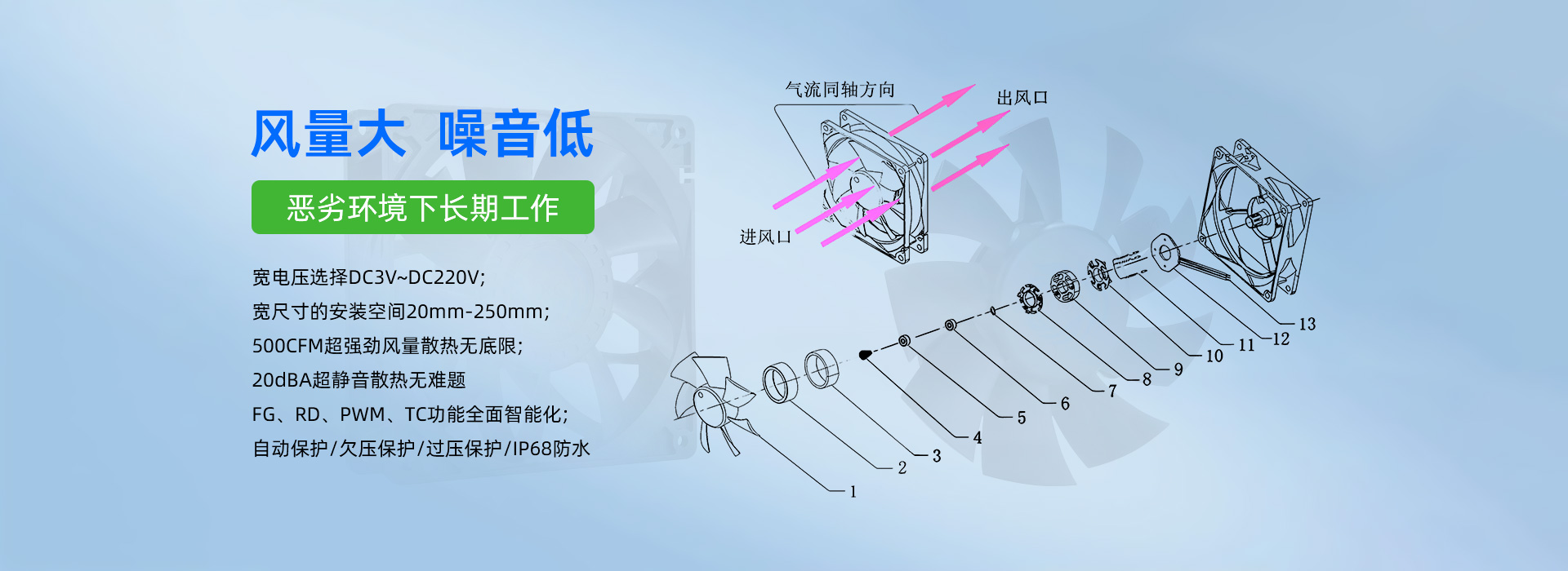 深圳市毅榮川電子科技有限公司于2005年創(chuàng)立于中國(guó)深圳、是一家專業(yè)研發(fā)、生產(chǎn)、銷售散熱風(fēng)扇的高科技企業(yè)。所生產(chǎn)的直流風(fēng)扇、交流風(fēng)扇、鼓風(fēng)機(jī)、防水/防塵風(fēng)扇、EC變頻風(fēng)扇、直流散熱風(fēng)扇、汽車(chē)散熱風(fēng)扇、靜音散熱風(fēng)扇、支架散熱風(fēng)扇、渦輪增壓風(fēng)扇、直流散熱風(fēng)機(jī)、直流離心風(fēng)機(jī)、直流鼓風(fēng)機(jī)、鼓風(fēng)機(jī)廠家、新能源風(fēng)扇、無(wú)刷馬達(dá)等,已廣泛應(yīng)用于:通訊設(shè)備、UPS電源、醫(yī)療器械、電焊機(jī)、工控設(shè)備、家用電器、空氣凈化行業(yè)、汽車(chē)行業(yè)、投影儀、美容儀器、運(yùn)動(dòng)器材等行業(yè)領(lǐng)域。